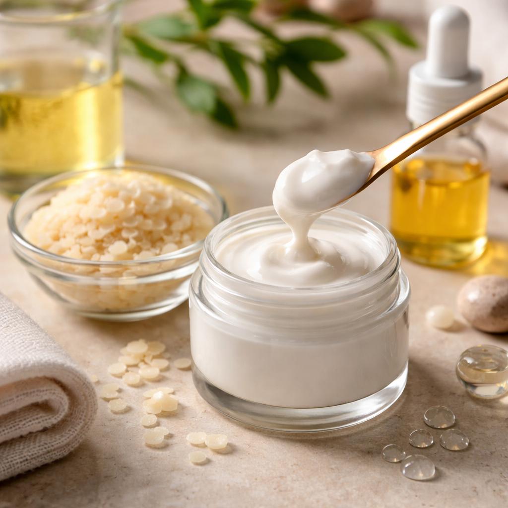 В увлажняющих кремах эмульсионный воск часто работает «за кадром», позволяя активным компонентам проявлять себя без помех. Когда текстура стабильна и однородна, распределение увлажняющих веществ по коже становится более равномерным, а ощущение — предсказуемым от использования к использованию.