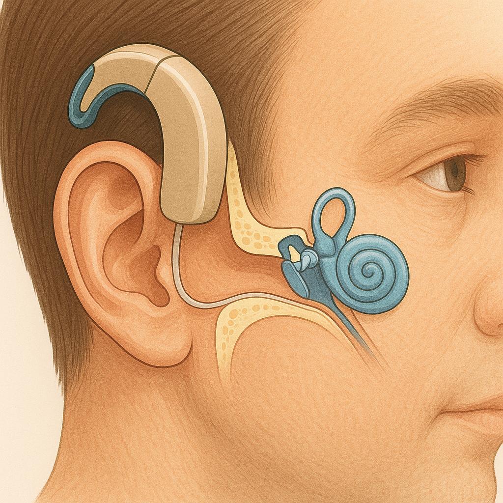 Далее всё работает, как в обычном слухе: колебания передаются через слуховые косточки во внутреннее ухо, где волосковые клетки преобразуют их в нервные импульсы. Эти импульсы поступают в мозг, который распознаёт их как знакомые звуки — слова, шаги, музыку.